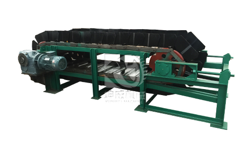 板式給料機一般分為重型、中型和輕型三種,是選礦廠常用的給料: 中型板式給料機系間歇給料機械,適用于短距離輸送給料粒度400mm以下的塊狀物料。在礦山、選廠、化工、水泥、建材等部門,廣泛用于從儲料倉往破碎、運輸等機械作均勻間歇給料。可水平安裝,也可傾斜安裝,其最大向上傾角20度。一般適應松散密度小于12400kg/m3、塊重小于500kg、溫度400℃以下的物料。 重型板式給料機是運輸機械的輔助設備,該機在大型選礦廠破碎分級車間及水泥、建材等部門,作為料倉向初級破碎機連續和均勻給料之用,也可用于短距離輸送粒度與比重較大的物料。可水平安裝,也可傾斜安裝,最大傾角12度。為避免物料直接打擊到給料機上,要求料倉不出現卸空狀態。 各種型號的板式給料機按傳動方式分右式傳動和左式傳動,順物料運行方向,傳動系統在機器右側的為右式傳動,反之為左式傳動。