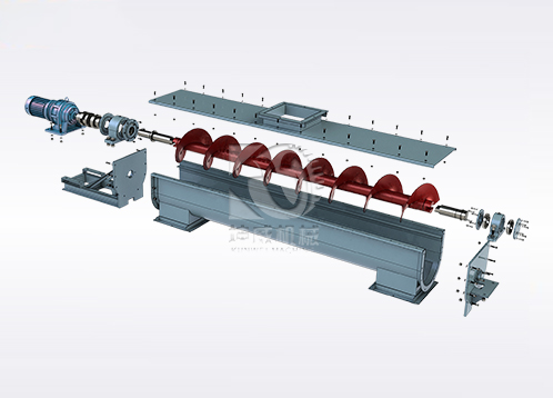ls型螺旋輸送機由螺旋機本體、進出料口及驅動裝置三部分組成。螺旋機本體由頭部軸承、尾部軸承、懸掛軸承、螺旋、機殼、蓋板及底座等組成。驅動裝置由電動機、減速器、聯軸器及底座所組成。