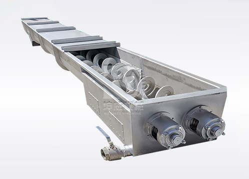2、雙無軸螺旋輸送機螺旋體為較厚的帶狀螺旋,無軸螺旋,頭部與驅動軸相聯。結構上分單、雙葉片兩種,材質上分碳鋼、不銹鋼兩類,按螺距比有1:1和2:3兩種。