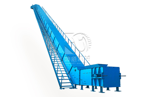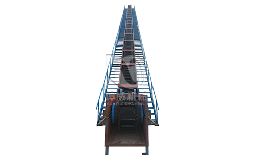 大傾角皮帶輸送機輸送物料的時候,傾斜角度大于30°以上也不會造成大面積物料下滑或撒料,是物料大角度輸送時,優選的輸送設備之一,大傾角皮帶輸送機的輸送帶結構是在平形橡膠輸送帶的兩側加上的波紋狀立式的“裙邊(擋邊)”,在裙邊的中間的輸送帶上加有一定強度和彈性的橫隔板組成匣形斗,使物料在匣形斗能夠連續不斷的進行輸送。